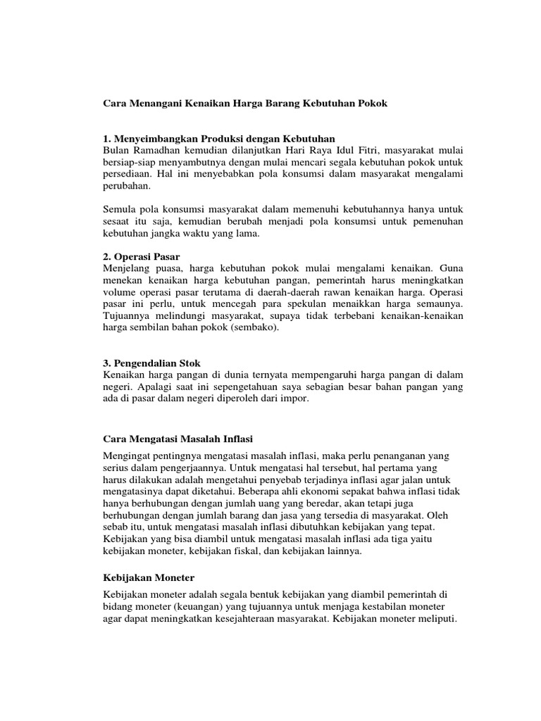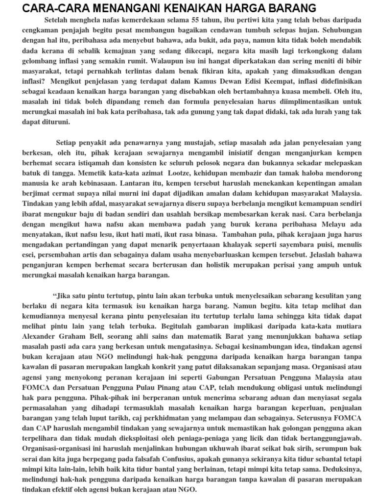 Karangan Cara Cara Menangani Kenaikan Harga Barang Pdf