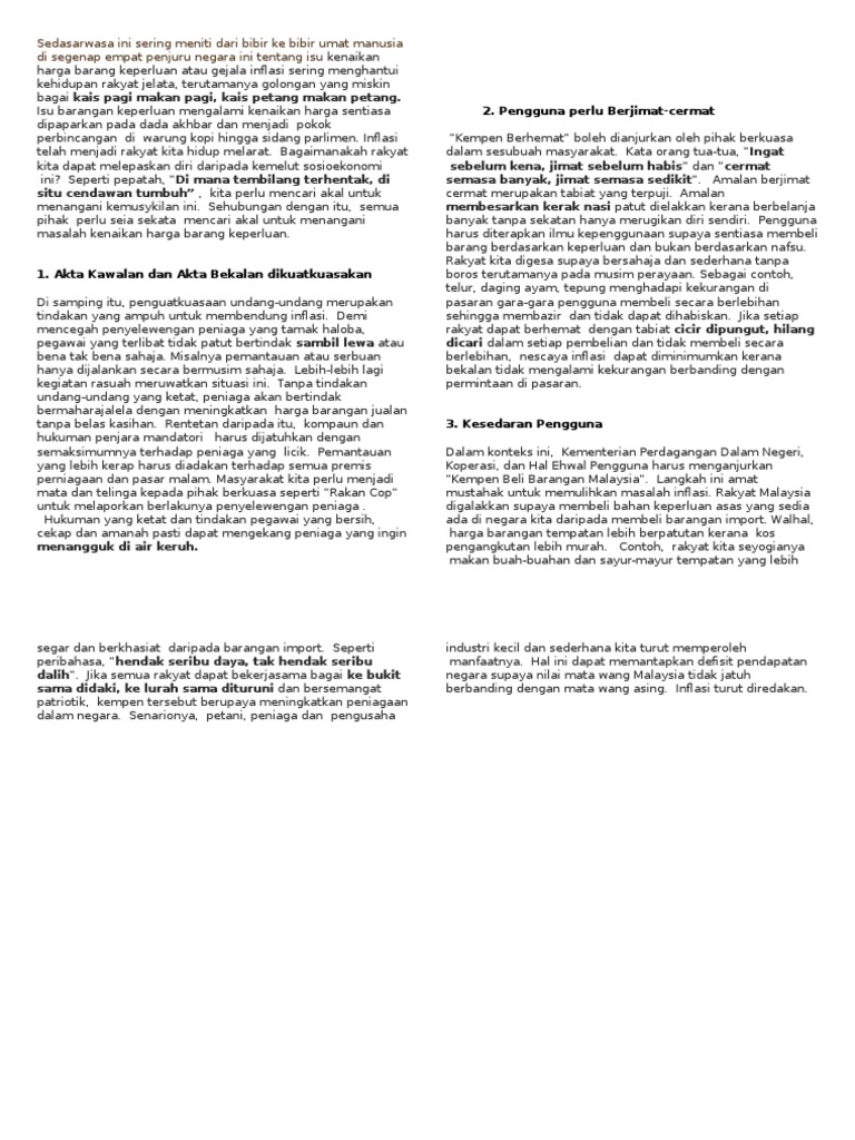 Contoh Karangan Langkah untuk mengatasi Kenaikan harga barang. Seperti dalam definisinya inflasi berdampak. Kata orang tua-tua Ingat sebelum kena jimat sebelum habis dan cermat semasa banyak jimat semasa sedikit.